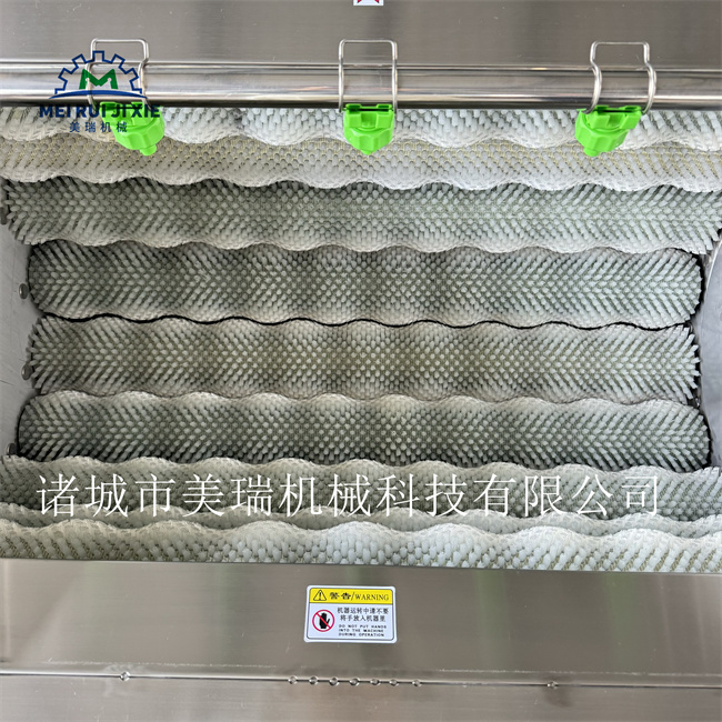供应土豆清洗脱皮机 连续式红薯清洗脱皮机 美瑞毛刷清洗机国标电机和减速机结合使用、机器噪音低,寿命更长,该机用于根茎、块茎类物料的整机坚固耐用,清洗、去皮。洗刷更干净,国标轴承、工业链轮、链条、刷辊材料经特殊工艺处理,耐磨损。运转平稳,产品更经久耐用,耐磨性能好。 光滑亮泽。具有清洗有效面积大、效率高、节水,可连续清洗,操作简单,使用寿命长等特点。整机清洗辊轴全部为采用进口优质尼龙丝制作,采用不锈钢制作(传动系统除外),丝毛经久耐用,超大清洗量,