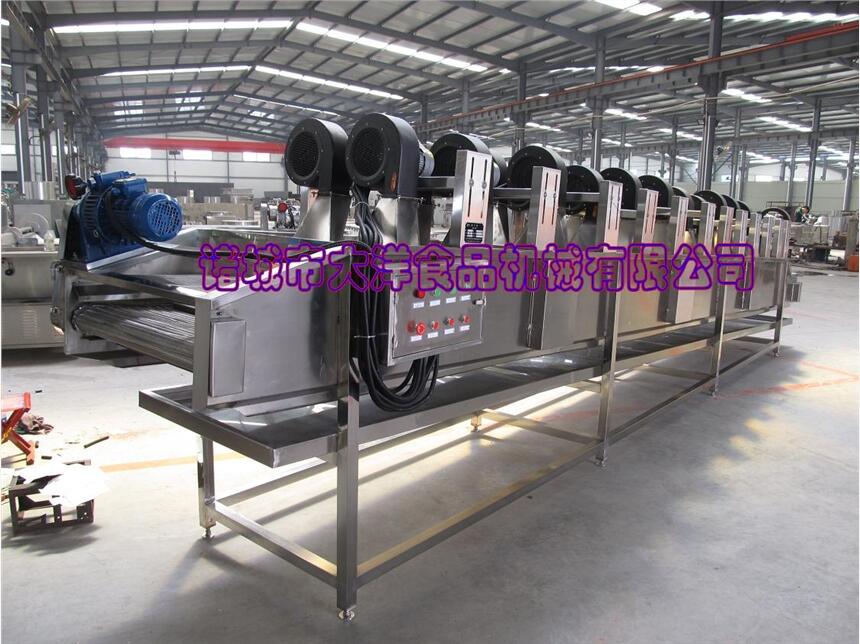 蔬菜风冷线 全自动蔬菜吹干流水线简介:本机是我公司吸收国际先进技术,结合一些特定行业实际生产情况研制开发的新型产品。该机采用全不锈钢制作,除具备脱水功能有除油渍、水垢等功效。且该机技术性能稳定,效率高。本机适用于食品、饮料、制药等多个行业,其具备的多种功能是其他设备所不能完成的,该机不使用蒸汽,大大节约了能源,降低了成本。风干机风干采用大风量低噪音风机自然风吹干。风干机设计为多次翻转输送,并有逆反风装置防止出现吹干死角,风干机吹干效果良好设备采用变频输送,速度可调输送平稳。