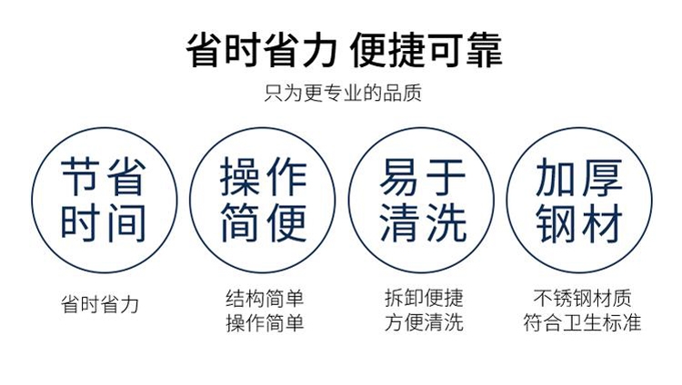 1、以不锈钢304材质制作,内胆外胆均使用1mm以上的不生锈板、美观,易清洗。