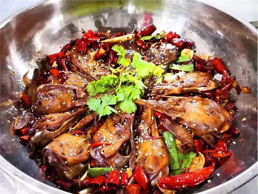 本菜系干锅香辣鸭头选用优质湖鸭,提前秘料腌渍入味,辅配特有香辣配料,川菜风味醇厚,入口香辣脆绵,回味长久,是佐餐、饮酒、团聚首选理想餐饮新宠。