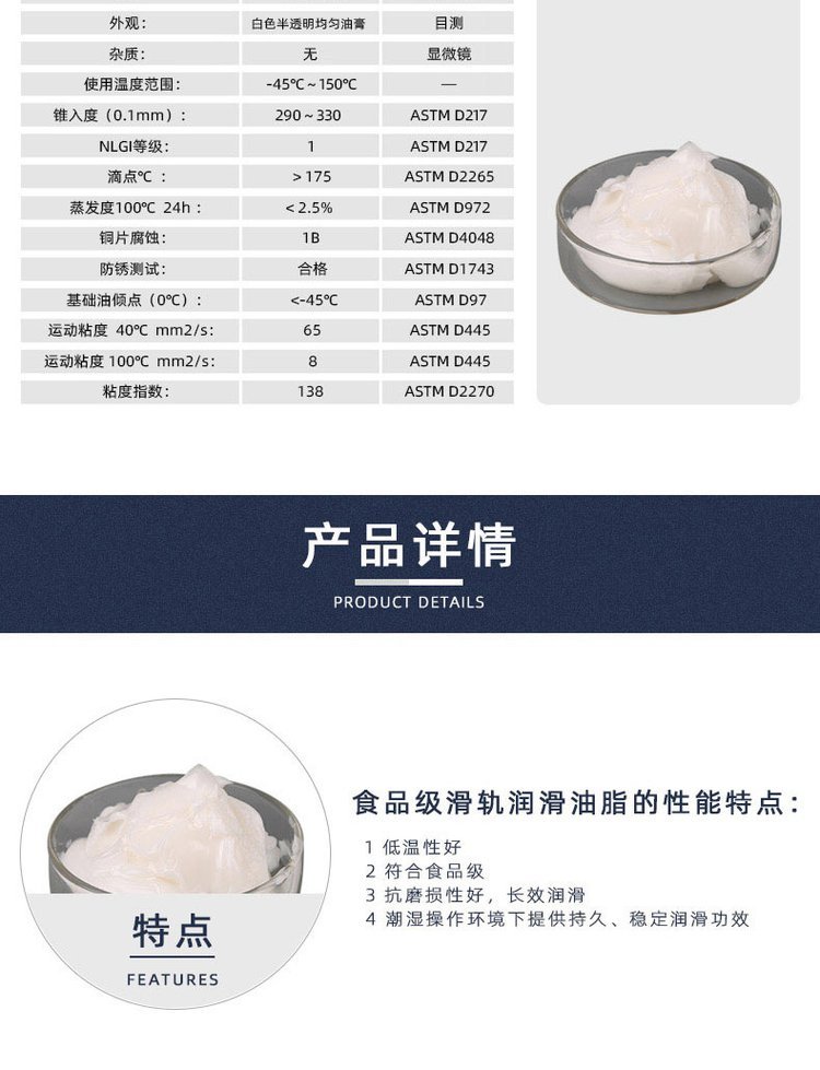 产品名称 | 食品级专用滑轨润滑脂 | ||