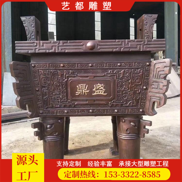 大型铸铜鼎1米1.5米2米铸铝铸铁司母戊鼎方鼎雕塑艺都厂家定制