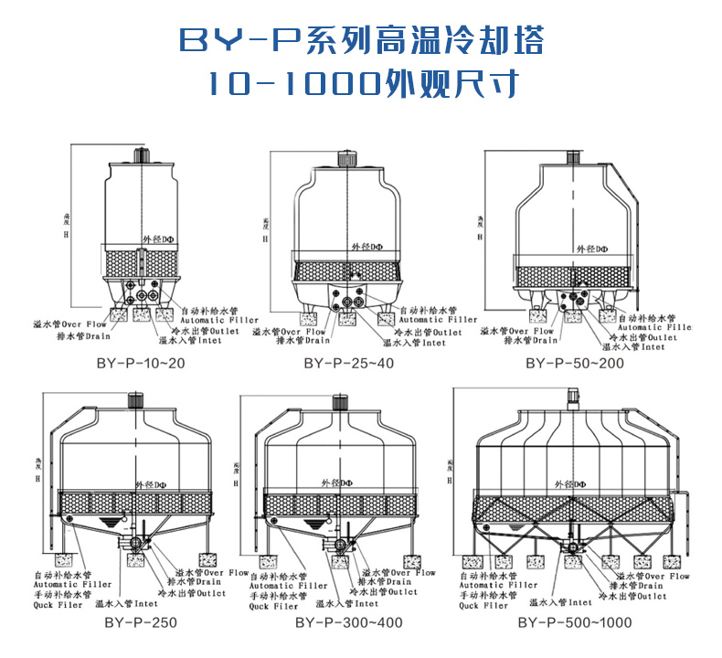 本研圆形逆流冷却塔BY-R-350T低噪音型冷却水塔包安装运费税费
