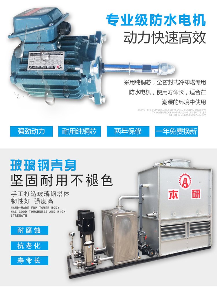 上海反应炉配套用方形逆流凉水塔 玻璃钢凉水塔 户外防水型电机 铝合金机翼型风叶 热镀锌钢支架