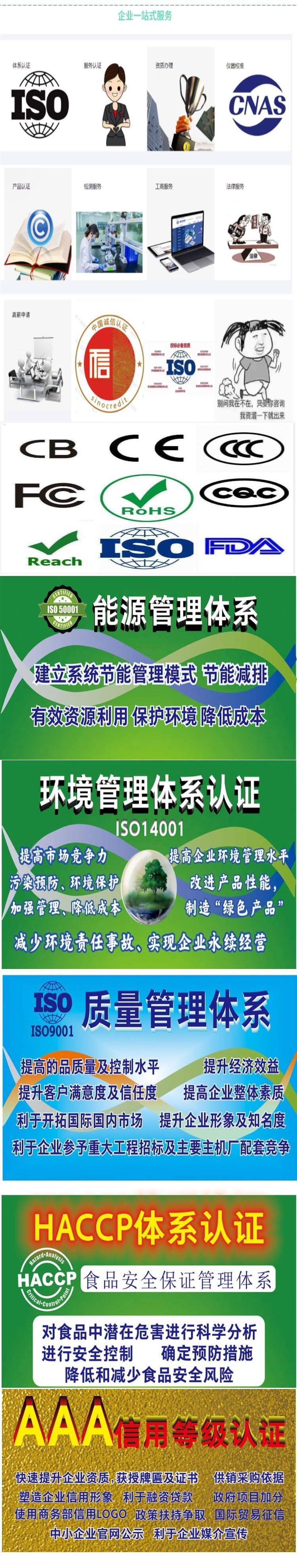 服务内容 | ISO体系认证、BSCI、sedex、商标等 | ||