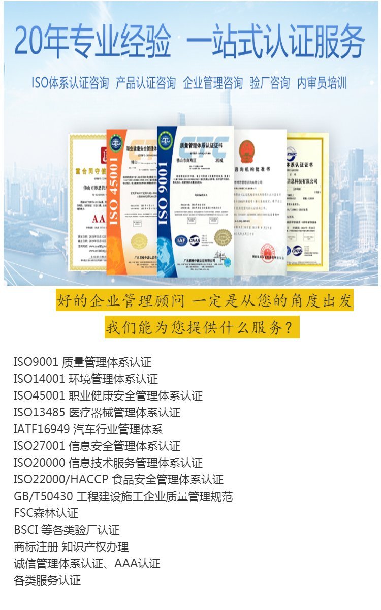 服务内容 | ISO9001、ISO14001、ISO45001 | ||