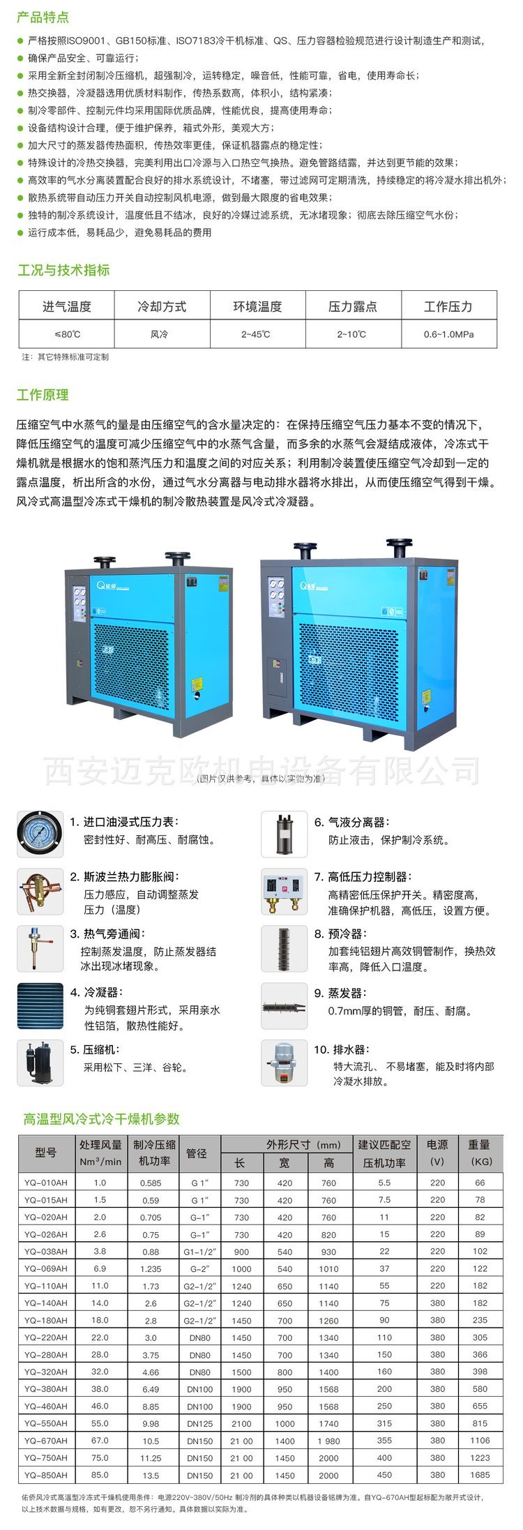 银川销售佑侨2.6m3冷干机YQ-026AH台湾佑侨冷冻式干燥机