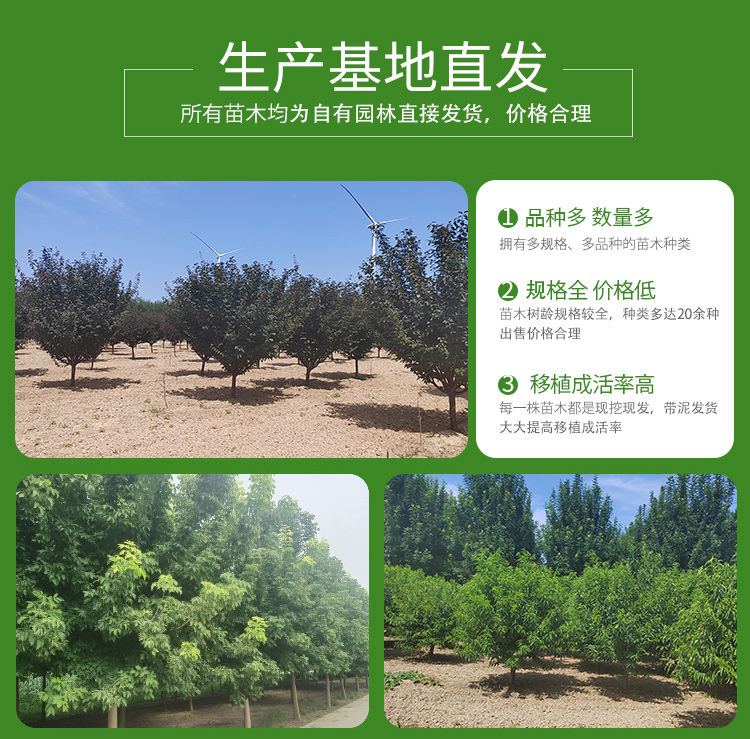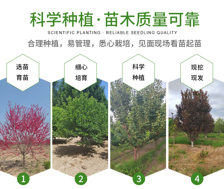 6-8-12公分庭院山桃树园林风景街道苗圃绿化树植株健壮