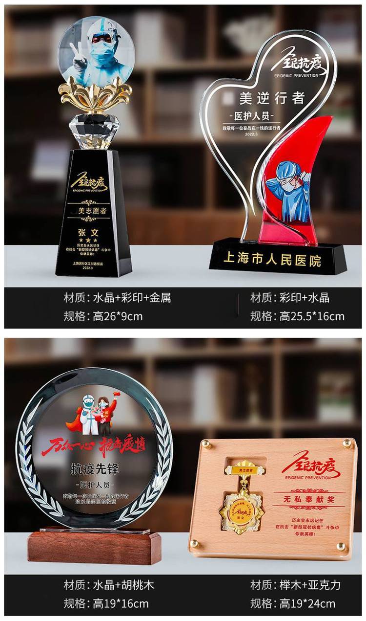 ? ? 广州腾洪工艺品厂,生产致敬逆行者奖杯 定制彩色琉璃奖杯订做?护士节定制奖杯#致敬逆行者水晶奖杯,抗疫奖杯定制,水晶工艺品,水晶奖牌,爱心援助奖杯,抗疫志愿者奖杯,琉璃奖杯,金属奖杯,树脂奖杯,大爱捐助感谢牌,木制奖杯奖牌等奖品,可以在奖杯上刻字,可以印个人生活照片,也可以在奖杯上雕刻单位名称和企业LOGO,还可以根据客户的要求定制造形和尺寸等 。