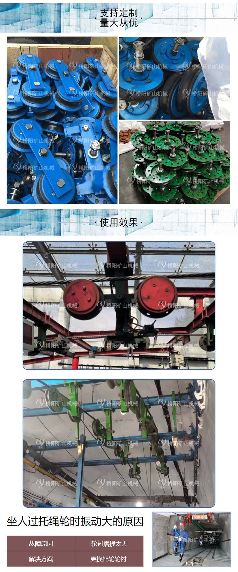 用途:安装于猴车轮衬上,避免钢丝绳的磨损,延长钢丝绳的使用周期,从而减少更换钢丝绳的工作。