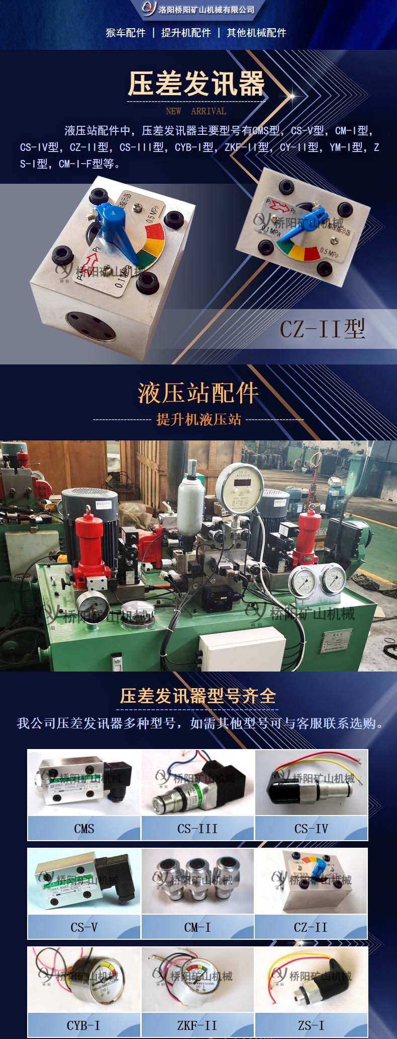 压差发讯器多种型号,主要材质是铝合金,适用范围有煤矿,水泥厂,电厂,钢厂,化工厂等范围广泛,主要有CMS,CS-V,CM-I,CS-IV,CZ-II,CS-III,CYB-I,ZKF-II,CY-II,YM-I,ZS-I,CM-I-F等。