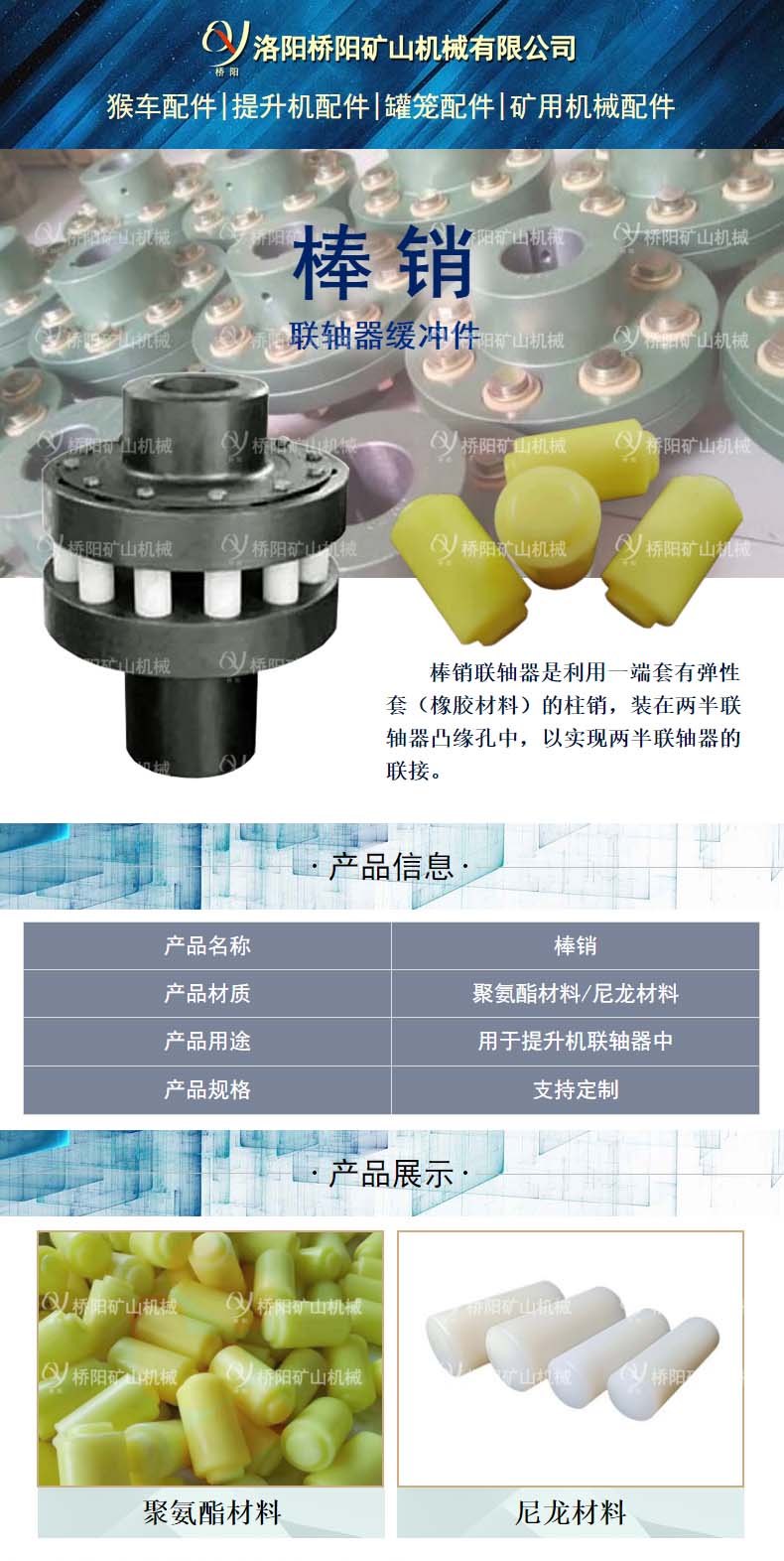提升机运行装置 聚氨酯缓冲件棒销