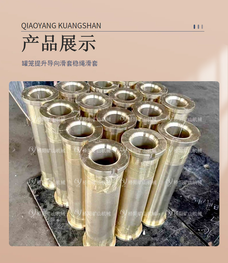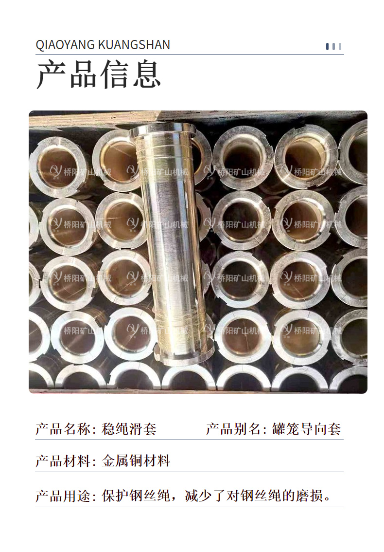 稳绳滑套又名罐笼滑套,钢丝绳导向套,按材料分主要有聚氨酯滑套、尼龙滑套、四氟树脂滑套、高分子滑套可替代铜件,金属铁滑套,各类不锈钢配件。