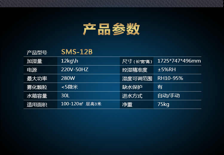 湿美湿膜加湿器适用:100~120㎡加湿机增湿商用工业SMS-12B