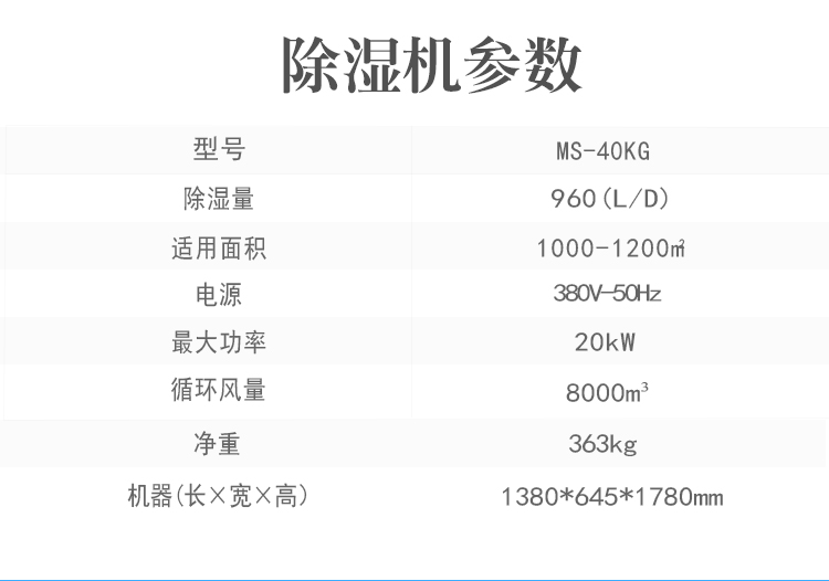 湿美工业除湿机适用:1000~1200㎡地下室大功率抽湿机器MS-40KG