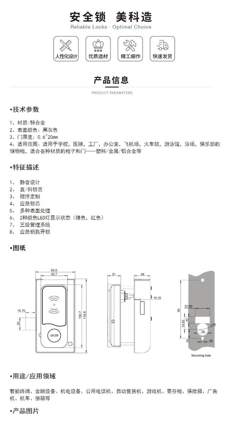 RFID感应智能电子锁更衣柜锁寄存柜锁刷卡锁MK732