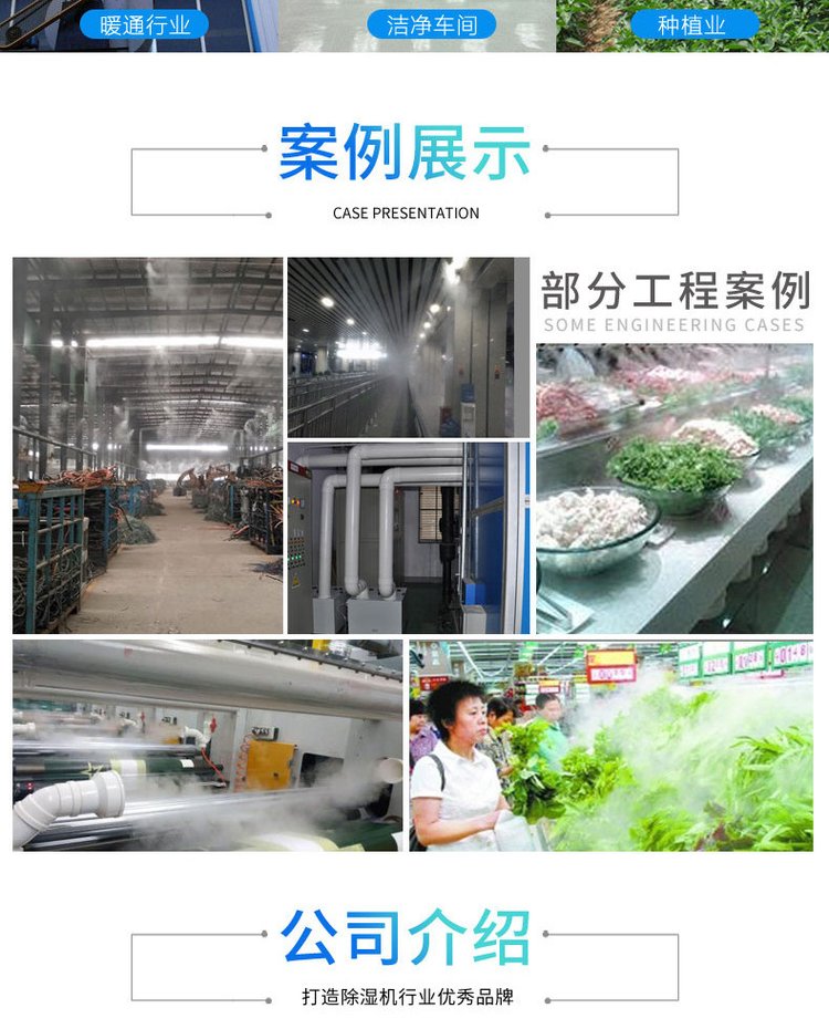 工业生产加湿机运用在汽车涂装制造行业,烟草行业,包装印刷制造行业,纺织业,电信网制造行业,冻库冷藏制造行业,高端酒店、办公楼内、独栋别墅电子产业,几类工业生产加湿机都有益处,应依据应用要求给予挑选。