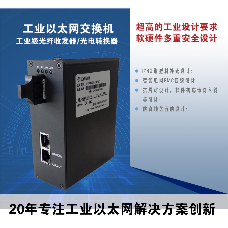 WISE1000A-1S(M)-2T工业以太网光纤转换器是正维通信专为工业领域开发的工业级转换器系列中的一种,可以在严酷的工业电磁环境下工作,适用于工业以太网设备通过光纤进行远距离及抗电磁干扰通讯,适合在不同地域温度环境中使用,为工业控制系统联网提供了方便、可靠的途径。