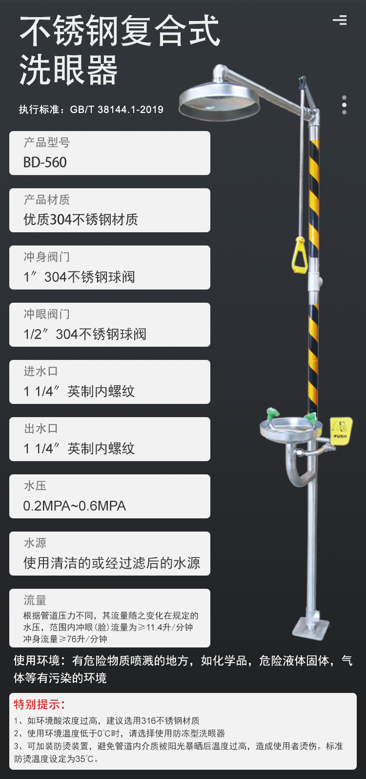 贝迪BRADY不锈钢复合式洗眼器BD-560可定制