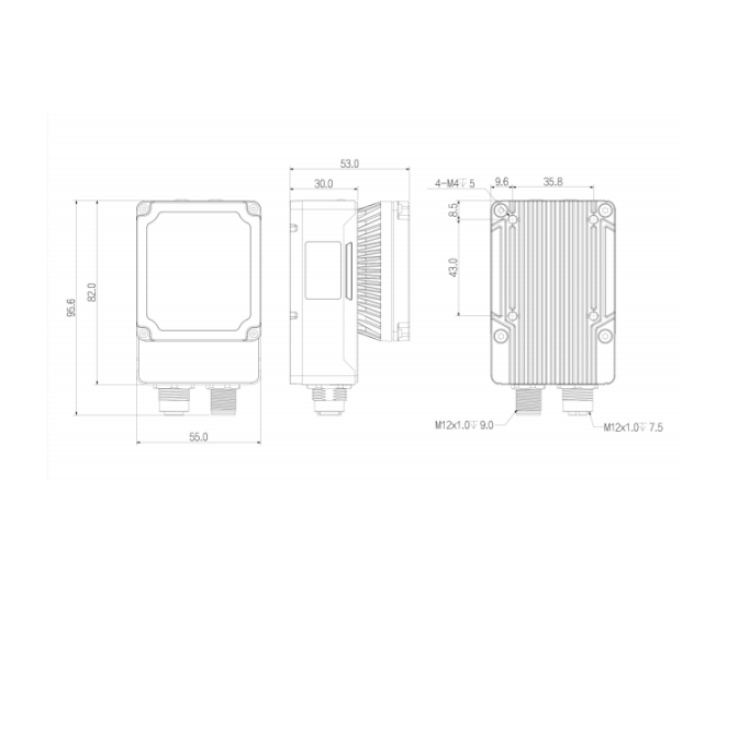 RE50G-08MWG1 华睿科技R5000系列500万像素8mm镜头全局快门45fps千兆工业以太网接口深度学习算法白光智能读码器 结构尺寸图(mm):