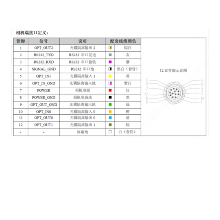 RE50G-08MWG1 华睿科技R5000系列500万像素8mm镜头全局快门45fps千兆工业以太网接口深度学习算法白光智能读码器 接口定义: