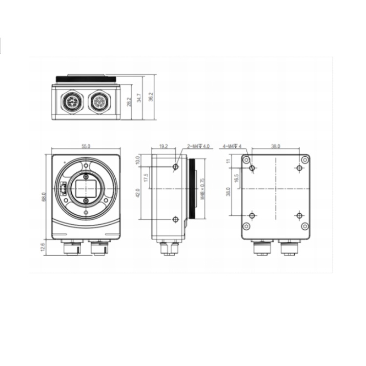 R5050MG-00C-NGV01 华睿科技R5000系列500万像素2/3英寸CMOS全局快门40fps千兆工业以太网接口智能读码器 结构尺寸图(mm):