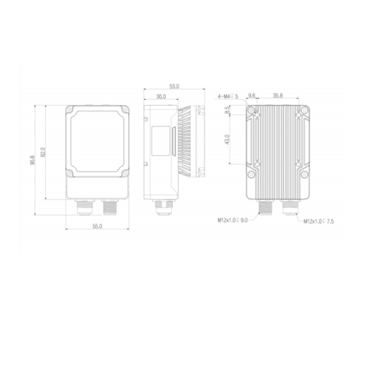 R5060MG-12M-RGG01 华睿科技R5000系列600万像素12mm镜头全局快门40fps千兆工业以太网接口红光智能读码器 结构尺寸图(mm):