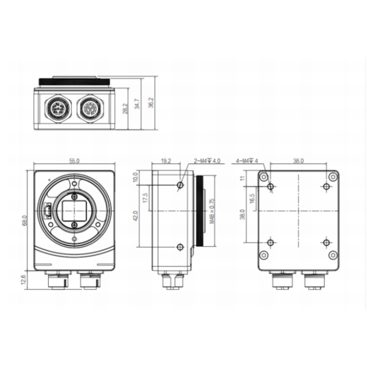 R5060MG-00C-NGG01 华睿科技R5000系列600万像素1/1.8英寸CMOS卷帘快门15fps千兆工业以太网接口智能读码器 结构尺寸图(mm):