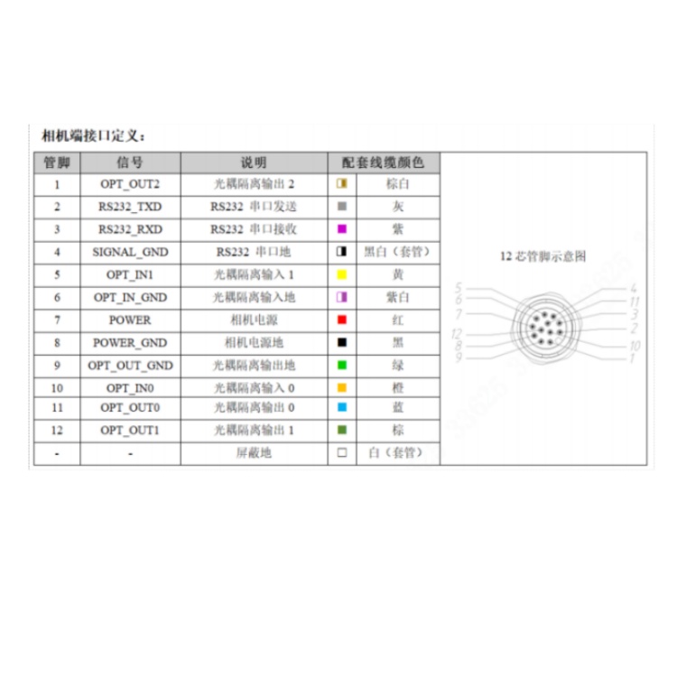 R5060MG-00C-NGV01 华睿科技R5000系列600万像素1/1.8英寸CMOS卷帘快门15fps千兆工业以太网接口黑白智能读码器 接口定义: