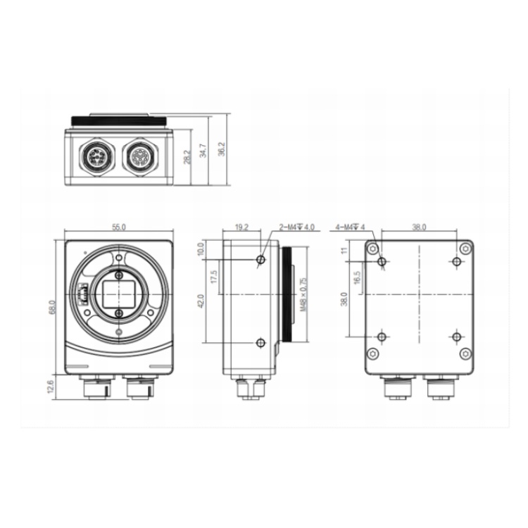 R5060MG-00C-NGV01 华睿科技R5000系列600万像素1/1.8英寸CMOS卷帘快门15fps千兆工业以太网接口黑白智能读码器 结构尺寸图(mm):