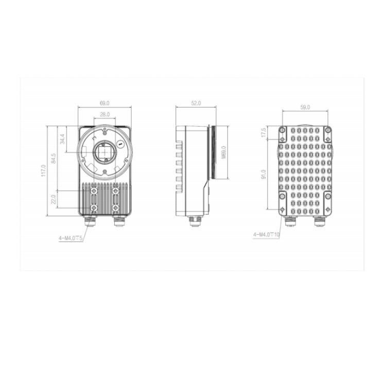产品尺寸 117mm × 69mm × 43mm(不含镜头座和接口高度)