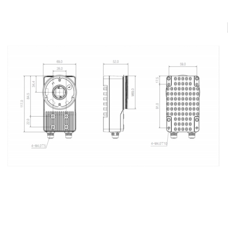 R7200MG-00C-NGV01 华睿科技R7000系列2000万像素1英寸CMOS卷帘快门15fps内置深度学习算法千兆工业以太网接口智能读码器 结构尺寸图(mm):