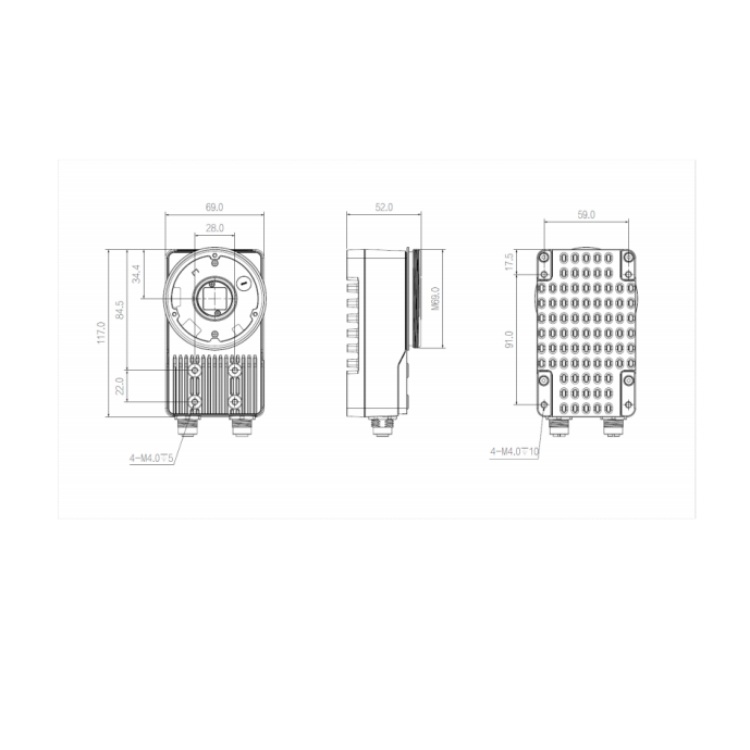 R7250MG-00C-NGG01 华睿科技R7000系列2500万像素1.1英寸CMOS帧率12fps内置深度学习算法千兆工业以太网接口智能读码器 结构尺寸图(mm):