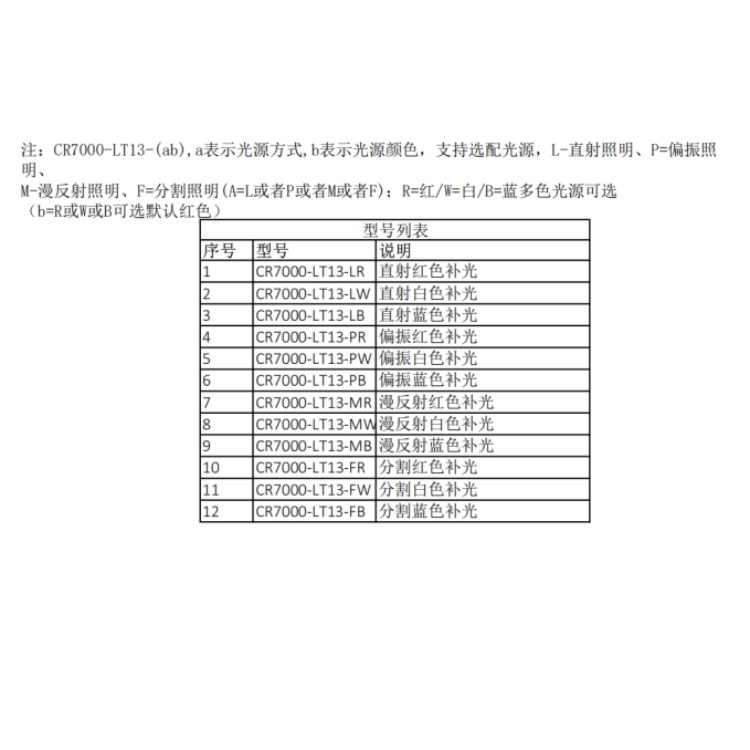 CR7000-LT13 华睿科技R7000系列2000万像素帧率25fps内置深度学习算法千兆工业以太网接口智能读码器 型号列表: