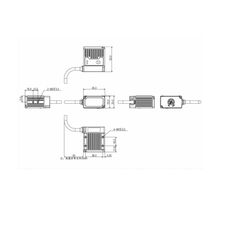 产品尺寸 45.0mm × 52.0mm × 25.5mm(不含线缆)