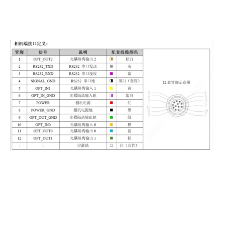 SS5016MG-25M-WGG01 华睿科技SS5000系列160万像素25mm镜头全局快门60fps内置丰富算法工具千兆工业以太网接口白光黑白智能相机 接口定义: