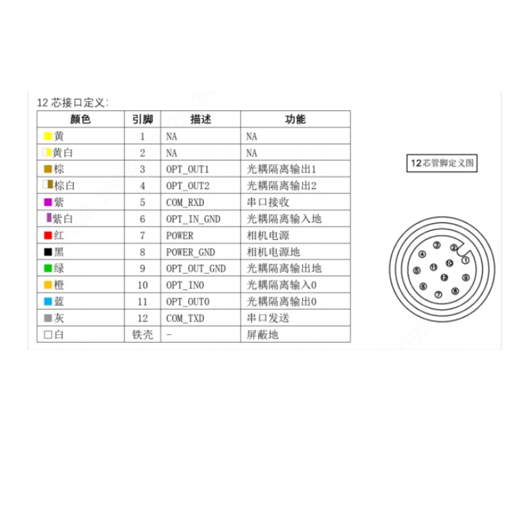 SI5501CG002 华睿科技X86系列500万像素1英寸CMOS全局快门35fps内嵌MVP算法平台软件千兆工业以太网接口彩色智能相机 接口定义: