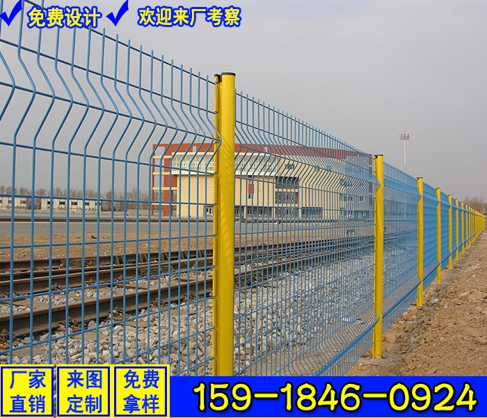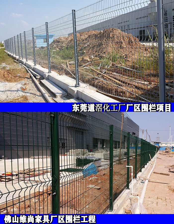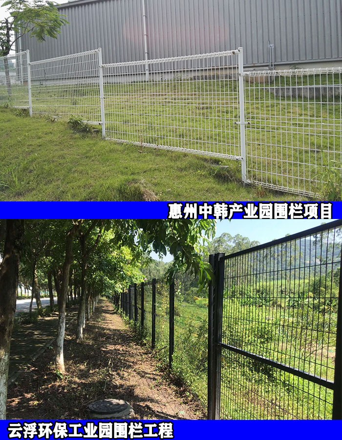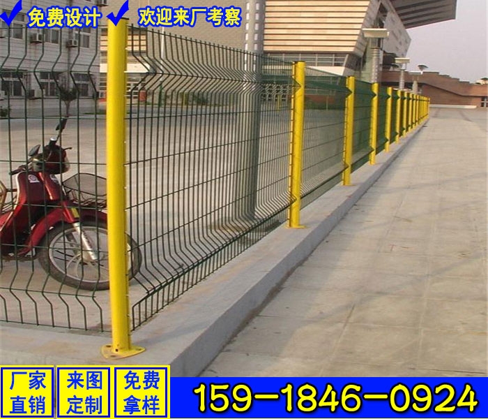 三角折弯护栏网特点 :编织焊接折弯而成,常用桃形立柱连接又叫桃形立柱护栏网。