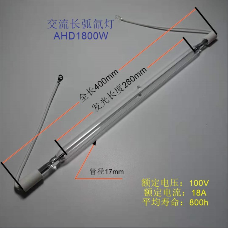 摸拟太阳光老化测试氙灯 交流长弧氙灯 AHD1800W 400MM