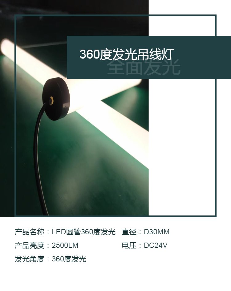 D30灯管360度全发光圆管DC24V低压灯管可吊装/竖装 品牌 | 宇创光 | ||