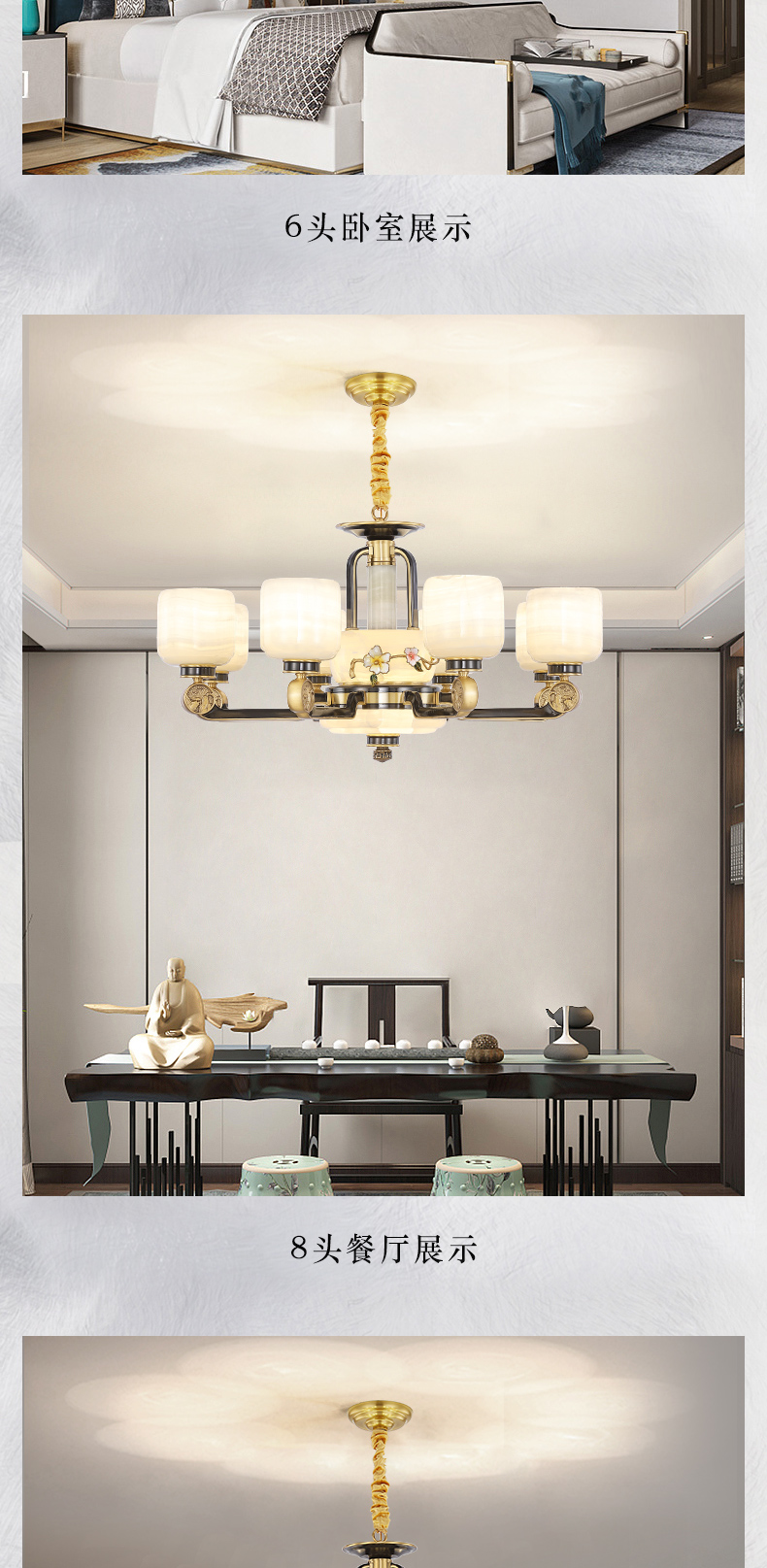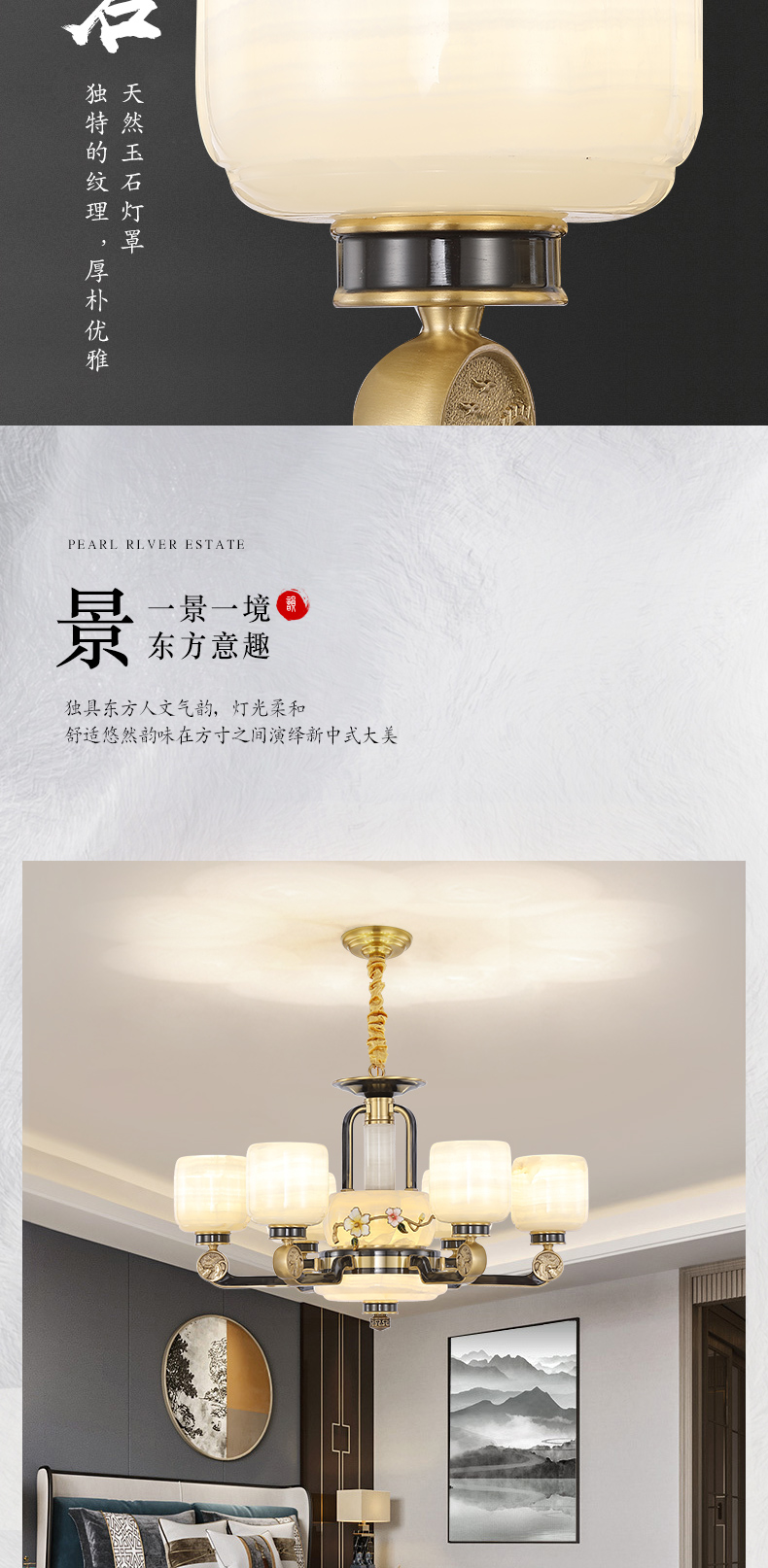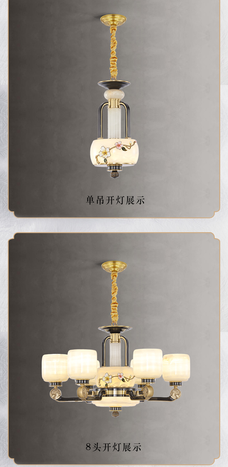 灯具材质全铜灯臂 白玉石灯罩 珐琅彩玉石中柱 玉石底锅