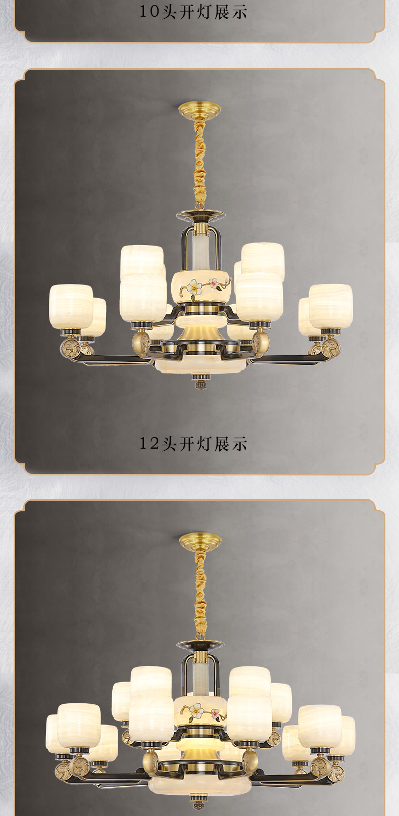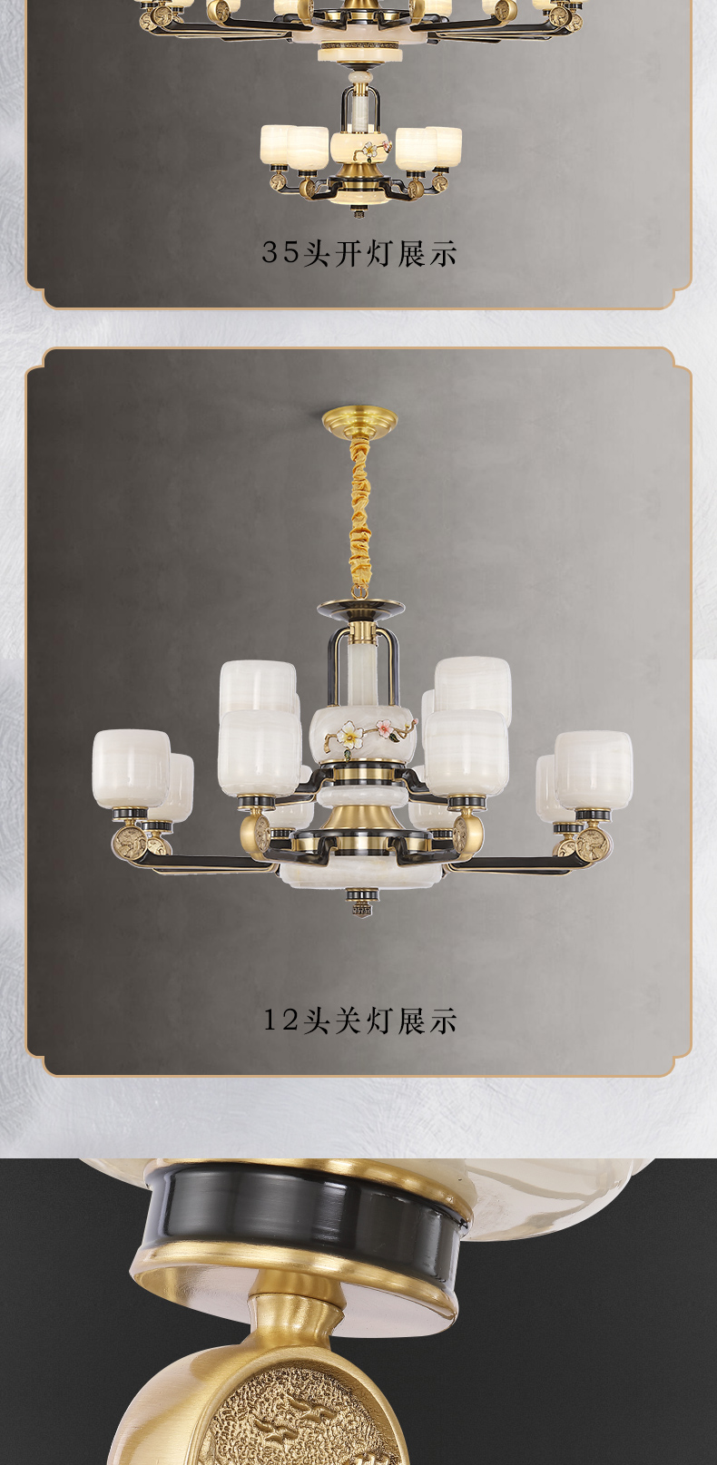 进丰轻奢全铜天然玉石灯别墅大厅复式楼客厅吊灯定制中式欧式灯饰