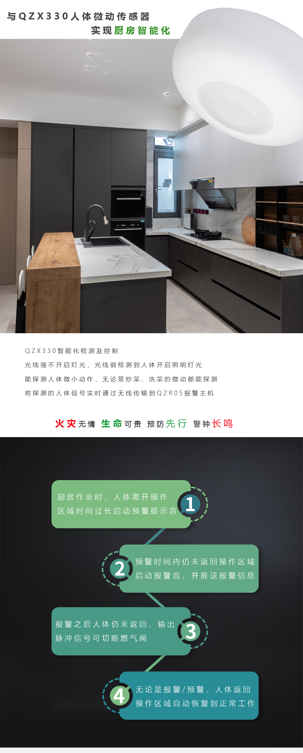 厨房动火离人报警系统人体传感器QZR05距离检测