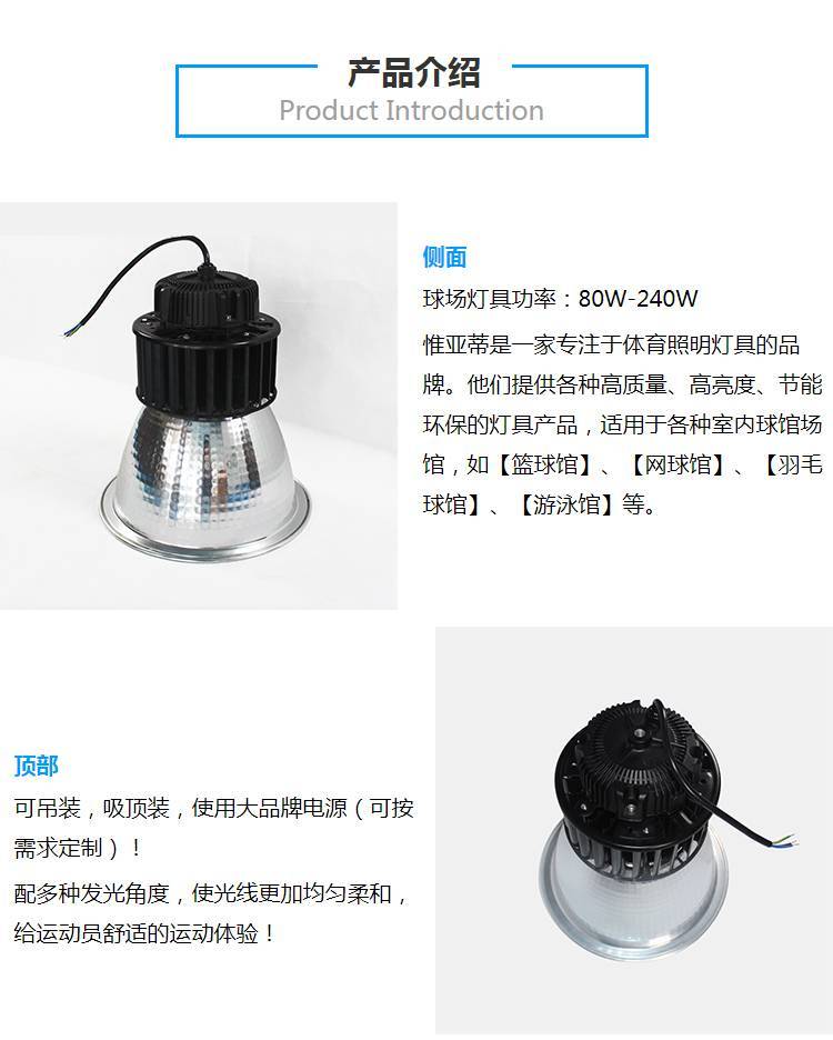 室内羽毛球馆灯光网球场照明灯具100W工矿灯防眩光球场灯