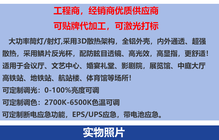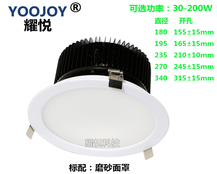 候车厅筒灯 超市开孔23/24/25/26/30/32/33公分天花灯IP65防水射灯 功率 | 100W | ||