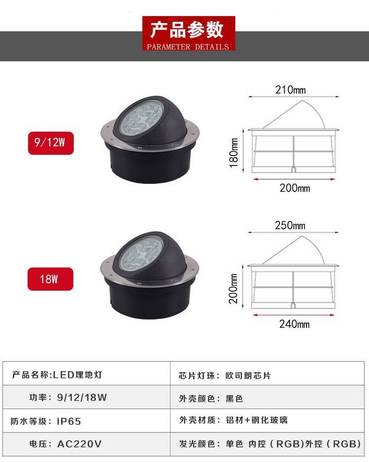 2.地埋灯功率:3W/6W/9W/12w/18w/24w