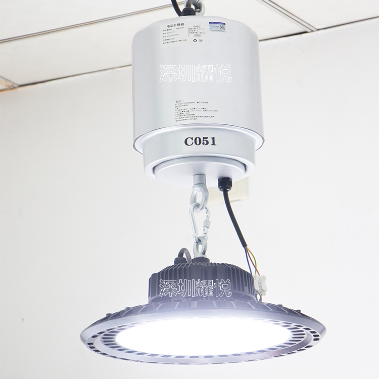 厂房灯具吊机UFO飞碟升降系统方圆荟升降器25米防旋转智能升降灯