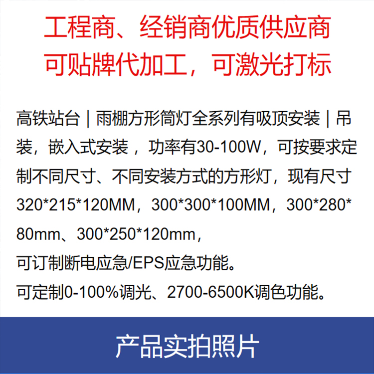 适用场所 | 商业照明,高铁站、地铁站,风雨棚、上下额站台、 收费站、会议厅照明 | ||