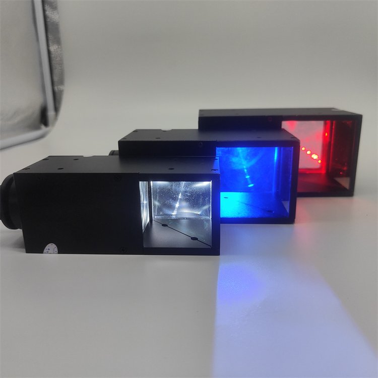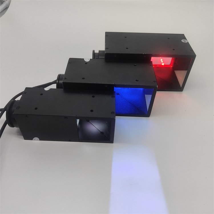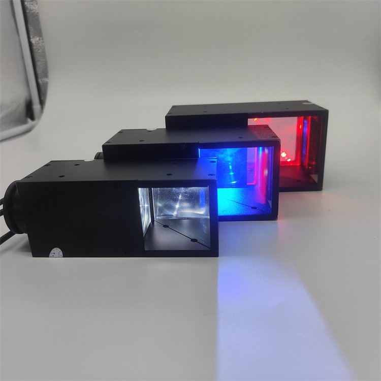 同轴平行光源的大功率高亮LED光源发出的散射光经特殊透镜模组、光学玻璃后,形成平行光。其光线能以同样的角度到达任何物体的表面,特别适合于光洁平面的缺陷检测、激光雕刻识别等。