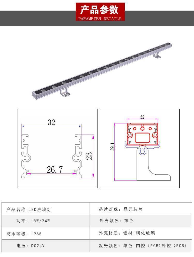 桥梁灯光亮化led线型投光灯户外防水欧司朗18w洗墙灯结构防水